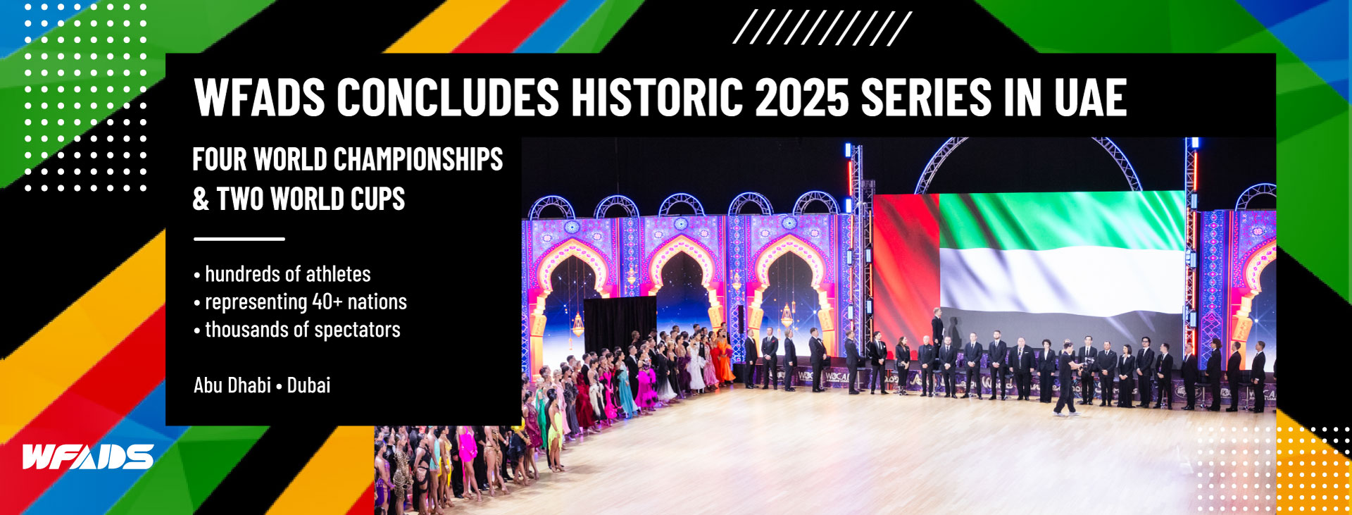 WFADS collaborates with international sports organizations and national federations, promoting global recognition of its disciplines including Acro Swing, Breaking, DanceSport and Acrobatic Rock’n’Roll, with the aspiration of being included in future Olympic Games.